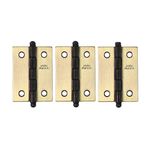 Dobradiça leve 2 polegadas fabricada em aço com acabamento latonado oxidado. A Dobradiça Leve 2 pol. Aço 03 unidades Acabamento Latonado Oxidado União Mundial possui capacidade de carga de até 8 Kg por dobradiça e é indicada para aplicações leves, como tampas de baús, portas de balcões, tampos, entre outros.