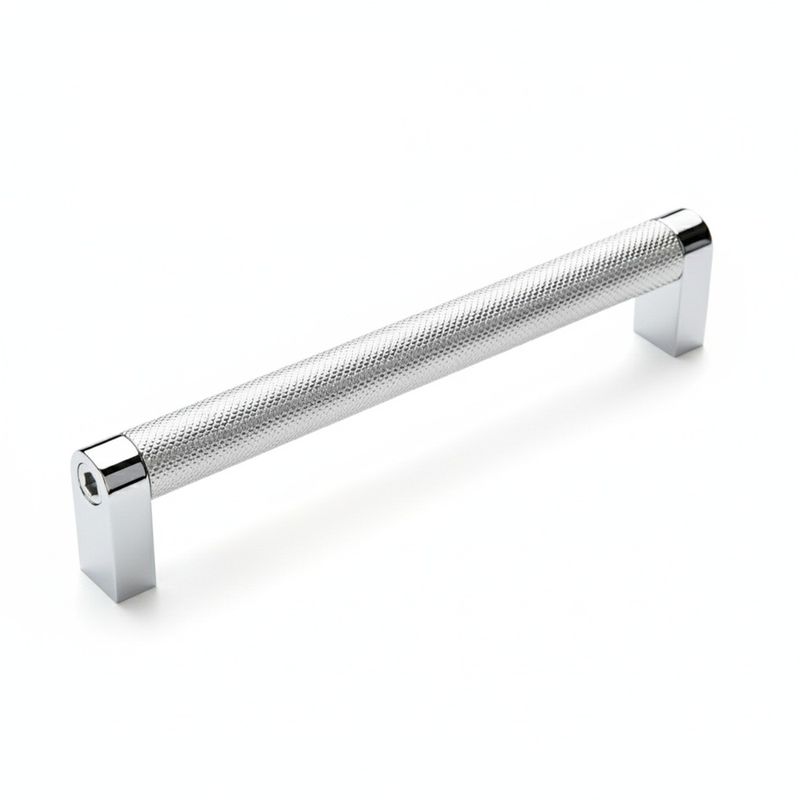 Design Inovador: Com acabamento Cromado e textura granada, este puxador adiciona um toque de modernidade e elegância discreta a qualquer ambiente. Seu Design minimalista e ergonômico, proporciona uma pegada confortável e segura.