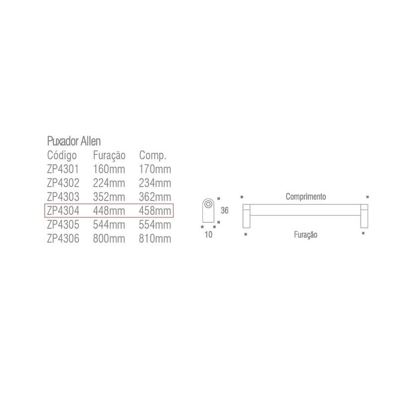 Inclui: 01 puxador alça Allen liso Preto 448mm, parafusos para instalação.
