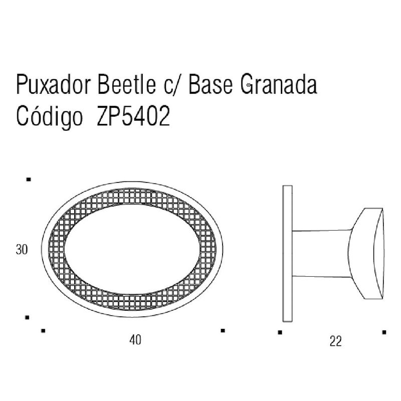 Inclui: 01 puxador ponto Beetle com Base Granada, parafuso para fixação.