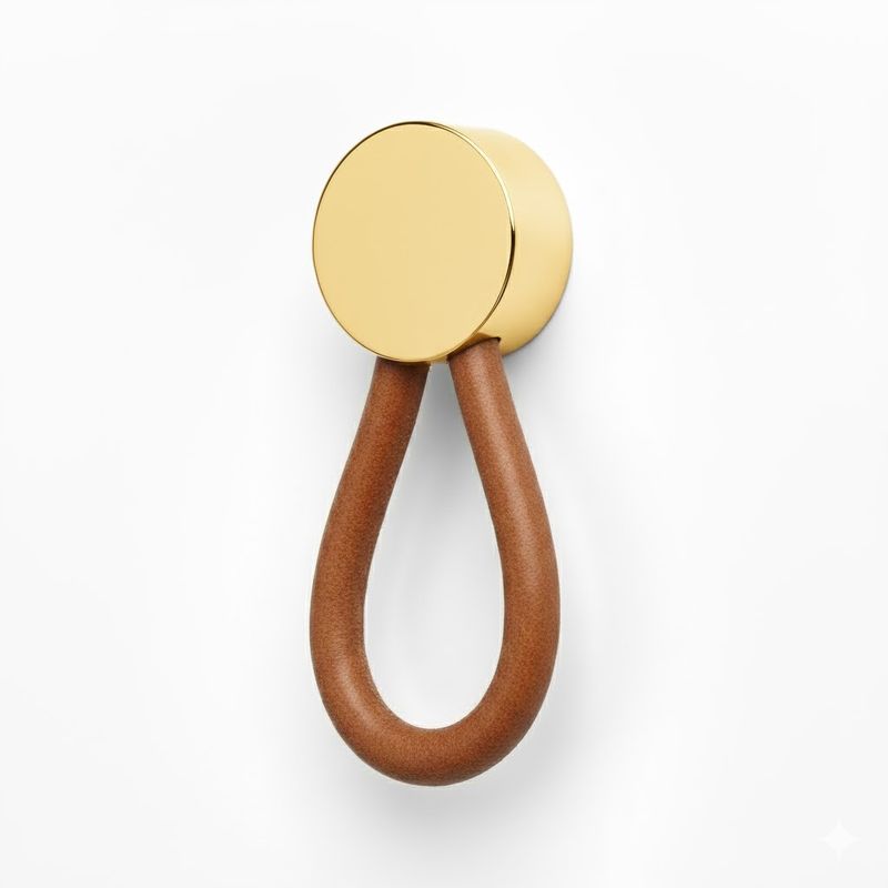 Design Refinado e Inovador: A combinação do elegante do acabamento dourado brilhante (gold) de alto padrão com a autêntica alça em couro marrom cria um contraste visual único, integrando-se perfeitamente em composições contemporâneas e minimalistas.