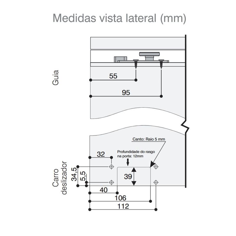 Com capacidade de carga de 40 a 60 Kg por porta, amortecedores para fechamento a abertura das portas e sistema anti-descarrilamento o sistema deslizante RO 47 AGP347 Agility TOP 01 Porta Rometal é ideal para quem busca um sistema com fechamento de porta leve e suave. É indicado para móveis de nível estético elevado que priorizam a qualidade Sustentação na base. Sistema com 02 amortecedores, fechamento/abertura suave das portas. Sistema com rolamento, maior durabilidade e deslizamento livre de ruídos. Para portas de madeira ou alumínio com peso de 40 a 60 Kg por porta (gatilho preto). Sistema embutido, necessário usinar a porta para instalação do sistema. Sistema com 02 amortecedores para um fechamento e abertura de porta mais suave. Kit com guia agility 3 em 1 (guia, limitador de altura e pescador) para portas com espessura de 15 a 25 mm. Sistema para 01 porta. Inclui 02 Carros deslizadores. 02 Guias superior 3 em 1. 02 Freios 6005. 02 Amortecedores R-240. Observações: Largura mínima da porta: 700 mm. Para portas com largura de 15mm utilizar os trilhos superior RM-228 e inferior RM-022. Para portas com largura de 18 a 20mm utilizar os trilhos superior RM-209 e inferior RM-023. Para portas com largura de 22 a 25mm utilizar os trilhos superior RM-229 e inferior RM-034.